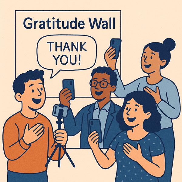 A Gratitude Wall feels immediate and personal, unlike a form letter or a line in an annual report.